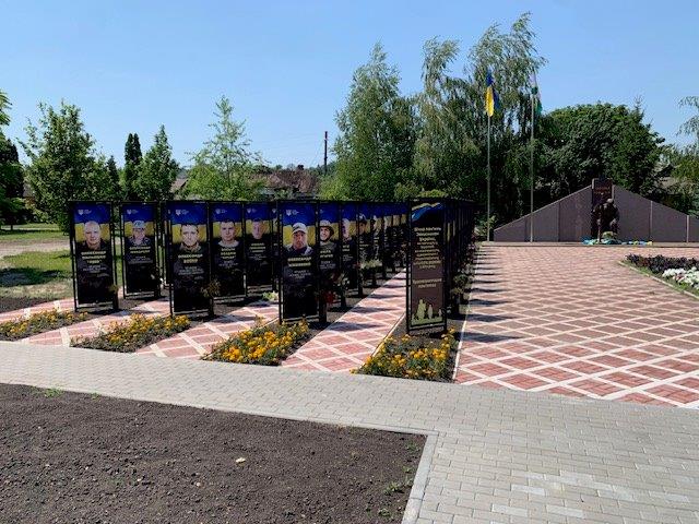 Mit der Installation auf einem zentralen Platz wird an die mehr als 100 Gefallenen aus Trostianets seit dem 24. Februar 2022 erinnert. Diese Toten hinterlassen anhaltenden Bedarf an humanitäre Hilfe